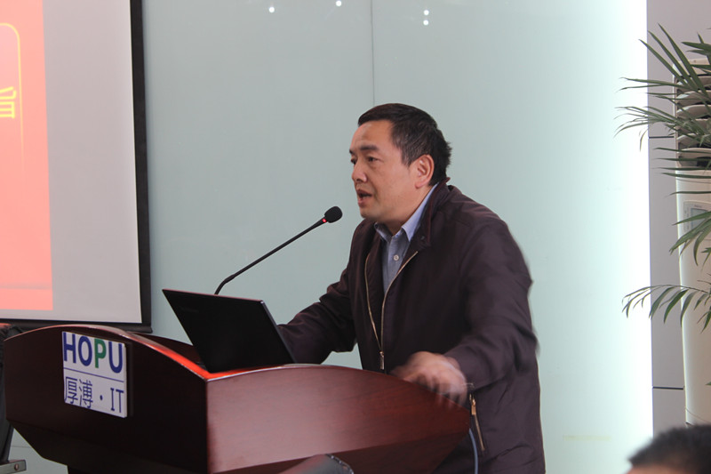 會議第四項武漢厚溥企業常務副總翁高飛介紹公司產品與服務,翁總介紹了厚溥價值、厚溥產品與服務、厚溥云平臺以及厚溥公司如何利用信息化和大數據提升管理效率,最后用四個思維做了總結——用戶思維,以用戶為核心;簡約思維,從用戶需求角度規劃產品;極致思維,用產品與服務提升用戶價值和體驗;大數據思維,利用大數據提升效率。